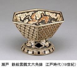 一方、酒宴を伴う場としてあげられるのが、江戸時代に発達した料亭料理でした。高級料理屋が出現するのは江戸時代の中期以降、吉原などの遊郭をはじめ各所の料理屋で趣向を凝らした酒宴が繰り広げられています。この世の憂さを忘れる場として、ここでは粋で洒脱な意匠を凝らした酒器や食器が用いられました。
